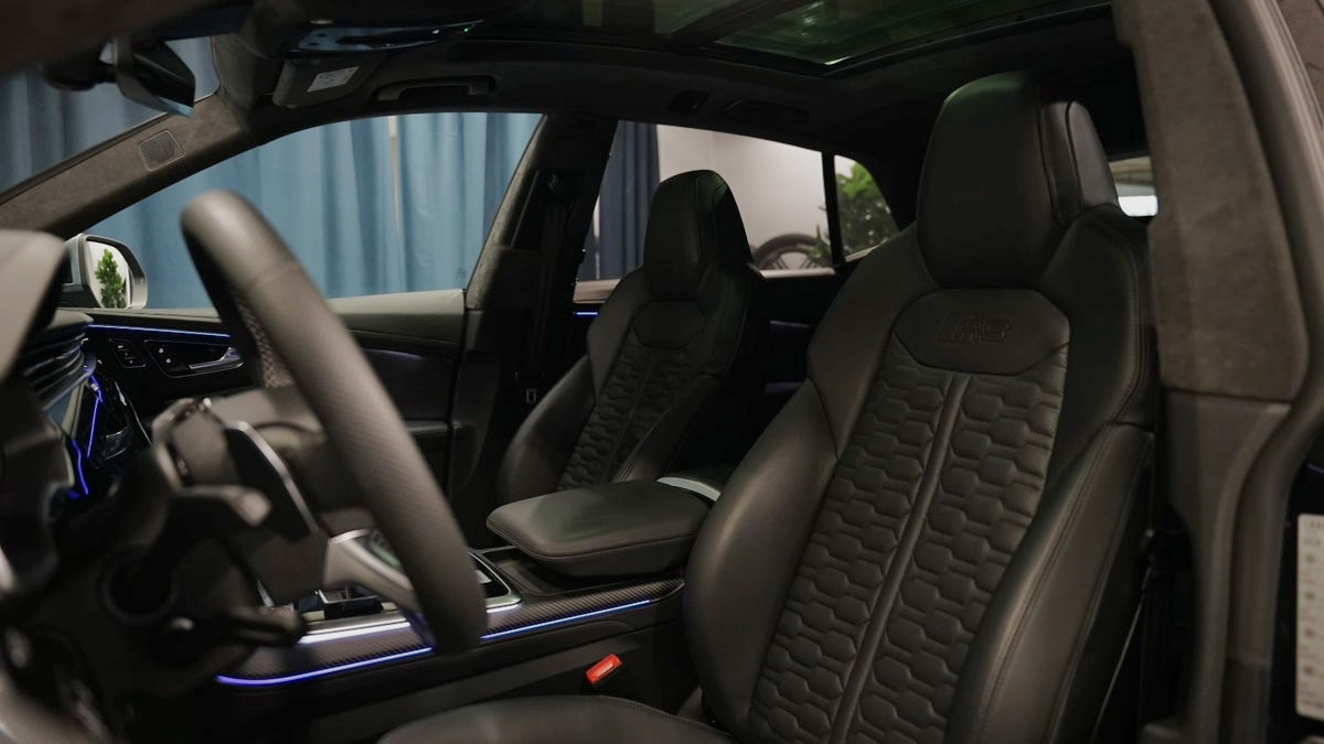 ✔️ RS sportssæder foran, perforeret Valcona læder med kubemønster og ventilation